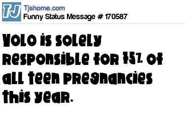 X says YOLO is solely responsible for 75% of all teen pregnancies this year.