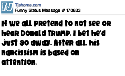 X says If we all pretend to not see or hear Donald Trump, I bet he'd just go away. After all, his narcissism is based on attention.