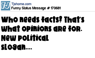X says Who needs facts? That's what opinions are for. New political slogan....