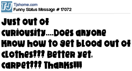 - # 85491 Anyone know how to get blood stains out of carpet? Totally unrelated, but I also am looking for a new girlfriend.