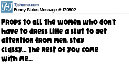X says Props to all the women who don't have to dress like a slut to get attention from men, stay classy... The rest of you come with me...