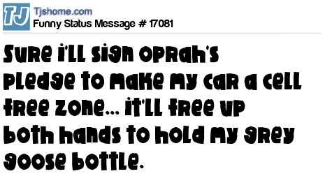 X is sure i'll sign oprah's pledge to make my car a cell free zone... it'll free up both hands to hold my grey goose bottle.