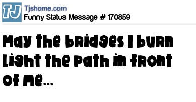 - # 77586 I don't burn bridges. I just loosen the bolts a little bit each day.