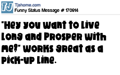 X says "Hey you want to Live Long and Prosper with me?" works great as a pick-up line.