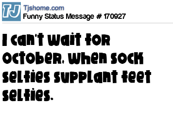 X says I can't wait for October, when sock selfies supplant feet selfies.