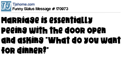 - # 173811 Marriage Lifelesson: Marriage is essentially peeing with the door open and asking "What do you want for dinner?"