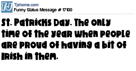 X  St. Patricks Day. The only time of the year when people are proud of having a bit of Irish in them.