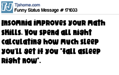 X says Insomnia improves your math skills. You spend all night calculating how much sleep you'll get if you "fall asleep right now".