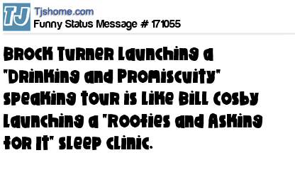 X says Brock Turner launching a "Drinking and Promiscuity" speaking tour is like Bill Cosby launching a "Roofies and Asking for It" sleep clinic.
