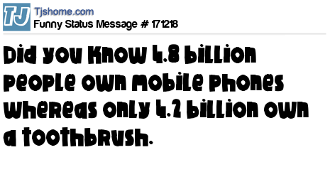 X says Did you know 4.8 billion people own mobile phones whereas only 4.2 billion own a toothbrush.