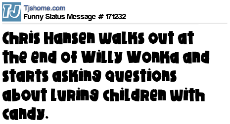 X says Chris Hansen walks out at the end of Willy Wonka and starts asking questions about luring children with candy.