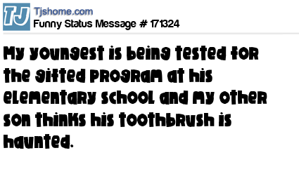 X says My youngest is being tested for the gifted program at his elementary school and my other son thinks his toothbrush is haunted.