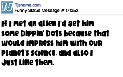 X says If I met an alien I'd get him some Dippin' Dots because that would impress him with our planet's science, and also I just like them.