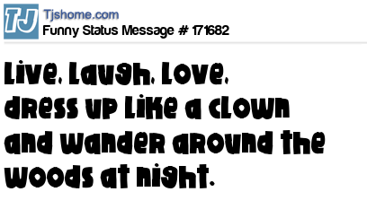X says Live, laugh, love, dress up like a clown and wander around the woods at night.