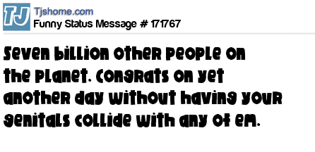 X says Seven billion other people on the planet. Congrats on yet another day without having your genitals collide with any of em.