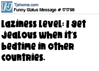 X says Laziness Level: I get jealous when it's bedtime in other countries.