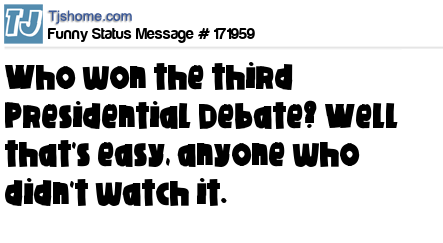 X Who won the third Presidential Debate? Well that's easy, anyone who didn't watch it.