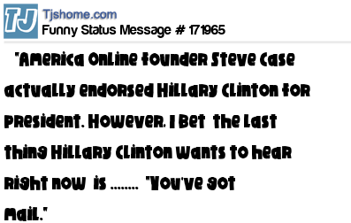 X says "America Online founder Steve Case actually endorsed Hillary Clinton for president. However, I Bet the last thing Hillary Clinton wants to hear right now is ........ "You've got mail."