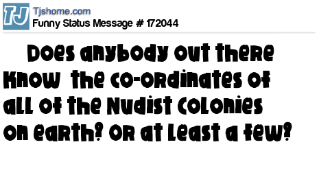 X says Does anybody out there know the co-ordinates of all of the Nudist Colonies on earth? Or at least a few?