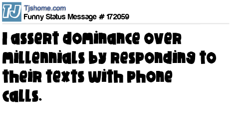 X says I assert dominance over millennials by responding to their texts with phone calls.