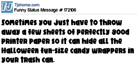 X says Sometimes you just have to throw away a few sheets of perfectly good printer paper so it can hide all the Halloween fun-size candy wrappers in your trash can.