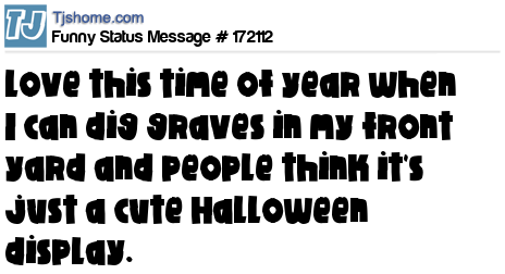 X says Love this time of year when I can dig graves in my front yard and people think it's just a cute Halloween display.