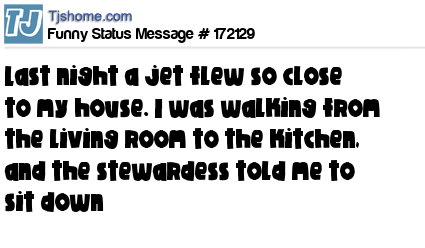 X says Last night a jet flew so close to my house. I was walking from the living room to the kitchen, and the stewardess told me to sit down