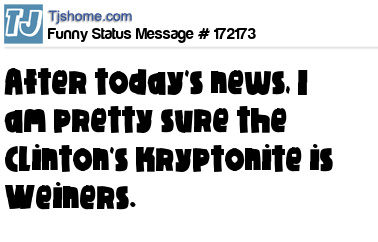 X says After today's news, I am pretty sure the Clinton's kryptonite is Weiners.