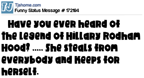 X says Have you ever heard of the Legend of Hillary Rodham Hood? ..... She steals from everybody and keeps for herself.
