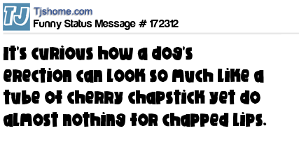 X says It's curious how a dog's erection can look so much like a tube of cherry chapstick yet do almost nothing for chapped lips.