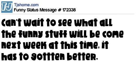 X says Can't wait to see what all the funny stuff will be come next week at this time, it has to gottten better.