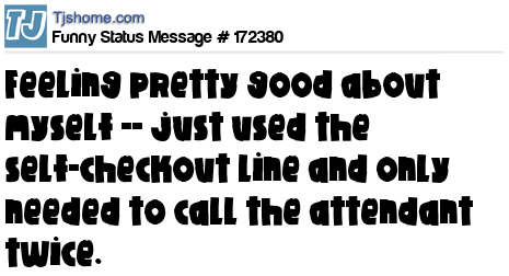 X says Feeling pretty good about myself -- just used the self-checkout line and only needed to call the attendant twice.