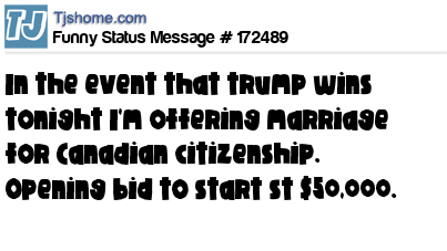 X says In the event that trump wins tonight I'm offering marriage for Canadian citizenship. Opening bid to start st $50,000.