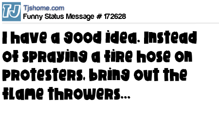 X says I have a good idea. Instead of spraying a fire hose on protesters, bring out the flame throwers...