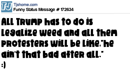 X says All Trump has to do is legalize weed and all them protesters will be like,"he ain't that bad after all." :)