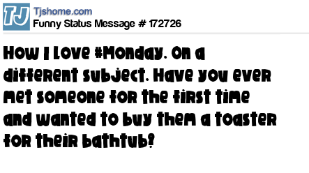 X says How I love #Monday. On a different subject. Have you ever met someone for the first time and wanted to buy them a toaster for their bathtub?