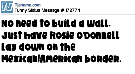 X No need to build a wall. Just have Rosie O'Donnell lay down on the Mexican/American border.