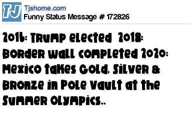 X says 2016: Trump elected 2018: Border wall completed 2020: Mexico takes Gold, Silver & Bronze in Pole Vault at the Summer Olympics..