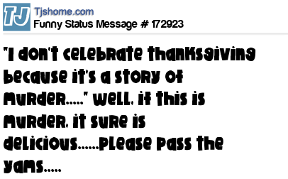 X says "I don't celebrate thanksgiving because it's a story of murder....." well, if this is murder, it sure is delicious......please pass the yams.....
