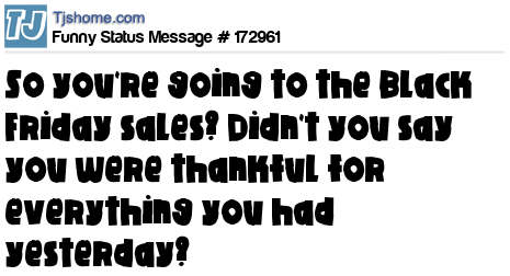 X says So you're going to the Black Friday sales? Didn't you say you were thankful for everything you had yesterday?