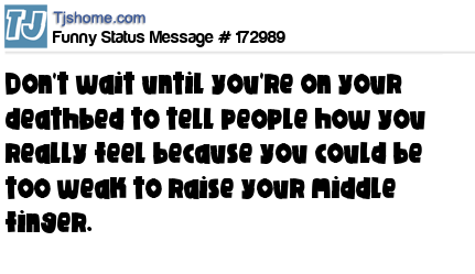 X says Don't wait until you're on your deathbed to tell people how you really feel because you could be too weak to raise your middle finger.