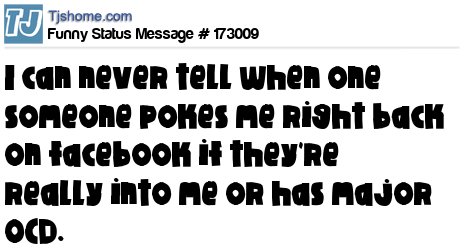 X I can never tell when one someone pokes me right back on facebook if they're really into me or has major OCD.