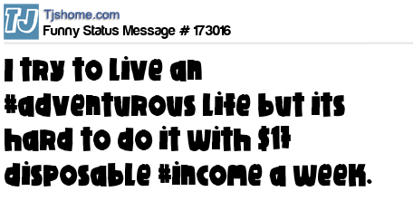X says I try to live an #adventurous life but its hard to do it with $17 disposable #income a week.