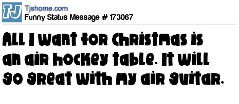 X says All I want for Christmas is an air hockey table. It will go great with my air guitar.
