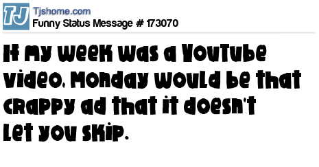 - # 182084 If my week was a YouTube video, Monday would be that crappy ad that doesn't let you skip