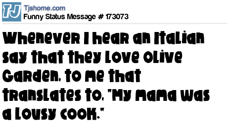 X  Whenever I hear an Italian say that they love Olive Garden, to me that translates to, "My mama was a lousy cook."