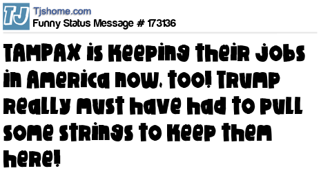 X says TAMPAX is keeping their jobs in America now, too! Trump really must have had to pull some strings to keep them here!