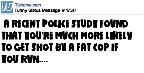 - # 53588 A recent police study found that you're much more likely to get shot by a fat cop if you run.