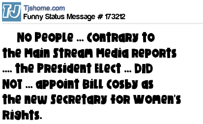 X says No People ... Contrary to the Main Stream Media reports .... the President Elect ... DID NOT ... appoint Bill Cosby as the new Secretary for Women's Rights.