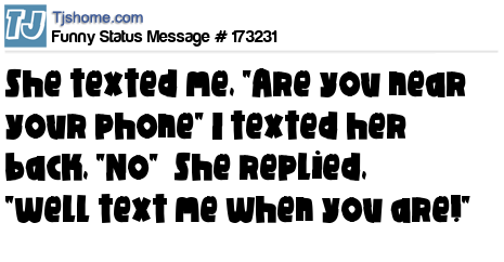 X says She texted me, "Are you near your phone" I texted her back, "No" She replied, "well text me when you are!"